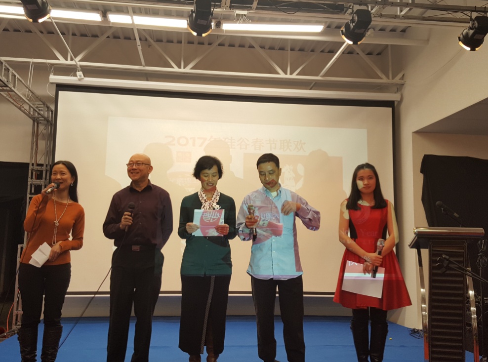 玉猴辞岁,金鸡鸣春,又迎来了我们华南理工大学校友会一年一度春天的约会,今年,我们与中大,中山医以及湘潭大学的校友会携手共办了一场联谊春晚。两百多位曾经在珠江两岸,湘江之畔挥洒过青春,如今又在硅谷这片神奇的土地上拼搏的学子们,在2月5日晚相聚一堂,共庆新春。东湾Newark一处宽阔的公司大厅,被鲜艳的中国元素烘托出浓浓的过节气氛,一串串悬挂着的小红灯笼洋溢着喜庆;一面面校友会的会旗让校友们感到宾至如归的亲切;一盘盘香气诱人的美食,弥漫着异乡团年饭的温馨;还有校友们一张张绽放的笑脸,写满了春天……今天,我们在海外的游子们过年啦!