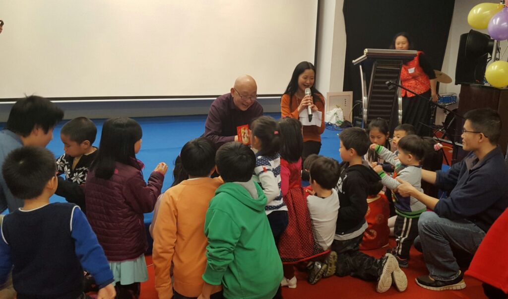 晚会开始,华工校友会的理事们和晚会的志愿者们在林仕会长的带领下,一齐走上舞台,向在座的校友和嘉宾们作了简短的自我介绍,并致以新春的祝福。中领馆驻旧金山的教育参赞杨军,也被邀到会,代表全体官员向在座的海外学者和家属们带来春节的问候。随后,在座的下一代小朋友,被召集到台前,节目主持人把一个个填满祝福的红包,送到他们稚嫩的小手,那一刻,阵阵“新春快乐”此起彼落,场面温馨感人。席间,校友们一边品尝着美食,一边调侃交流,笑语欢声。新老朋友,互道一句问候,互送一声祝福,同是故乡人,相逢何必曾相识?我们欢聚今宵,只因我们有着共同的乡音,乡情…..