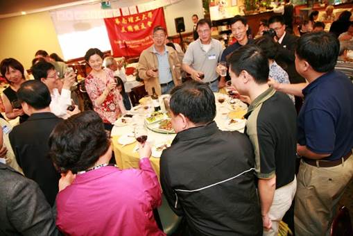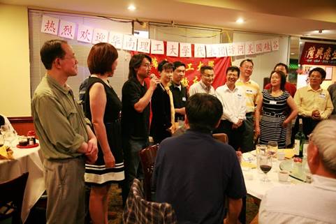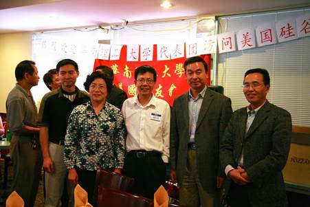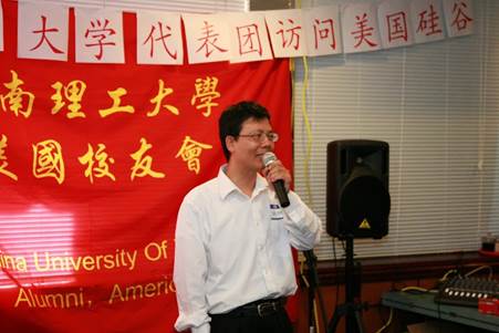 今夜,我们相逢在硅谷 ---美国校友会欢迎母校访问团晚宴 八月四日,一个盛夏的周末,湾区特有的凉风,还是让人感到一阵阵的寒意,然而,在Sunnyvale的新港酒家内,却洋溢着比盛夏还火热的气氛。华南理工大学美国校友会,正在这里举行隆重欢迎由刘琪瑾副书记率领的一行十八人的母校访问团。这个由学校高中层干部组成的访问团,刚刚结束了在马里兰大学的短期学习,来到湾区参观斯坦福大学,伯克利大学,和拜访校友。 餐厅内,鲜红的华工校友会会旗和醒目的欢迎横幅高挂,令人倍感亲切和温馨。林仕会长代表校友会热烈欢迎来访的母校代表团,并向校友介绍出席晚宴的旧金山中国总领馆教育参赞徐永吉和领事陈文正。徐参赞表示很高兴看到校友会和母校有这么紧密的联系。刘琪瑾副书记代表访问团的全体干部成员,为海外的华工人送来母校的亲切问候,向在座的校友们介绍了华工的近期发展和长远规划,并表扬校友对母校大力支持,去年捐款达二亿多,在全国排名第六。母校近年发展良好,是十九所全国一流大学的一员。 在余其俊副书记介绍了这次短期学习的情况后,访问团的全体干部,校友会的全体理事都在晚宴上一一作了自我介绍。新朋旧友欢聚一堂,碰杯声声,互道祝福与问候,场面热烈感人。同是华工人,相逢何必曾相识?我们能走到一起,是因为我们的心中,都有一个共同的名字-华工!那是一份深深的思念,也是一份恒久的骄傲和自豪。 晚宴中,由校友会理事石益坚,黄志斌高歌的一曲“友谊之光”,把气氛推向了高潮。今宵,是母校这条友谊的纽带,让我们相逢于太平洋的彼岸,这道璀璨的友谊之光,将不会随着时空而褪色,因为,它是由我们心中一个永恒的名字缔造-华工! 随后,代表团成员也高歌了一曲华南理工大学的校歌,优美抒情的旋律,饱蘸了母校情结的文字,深深打动了海外的校友们,随着歌声,母校的一景一物,又在脑海里回放,引发出阵阵怀旧的情愫…… 愉快而又短暂的聚会,在一阵阵握手和拥抱,一句句依依惜别的珍重再见中结束。盛夏的寒风有点刺骨,但是,我们每个人的心里都盈满了温馨和暖意。