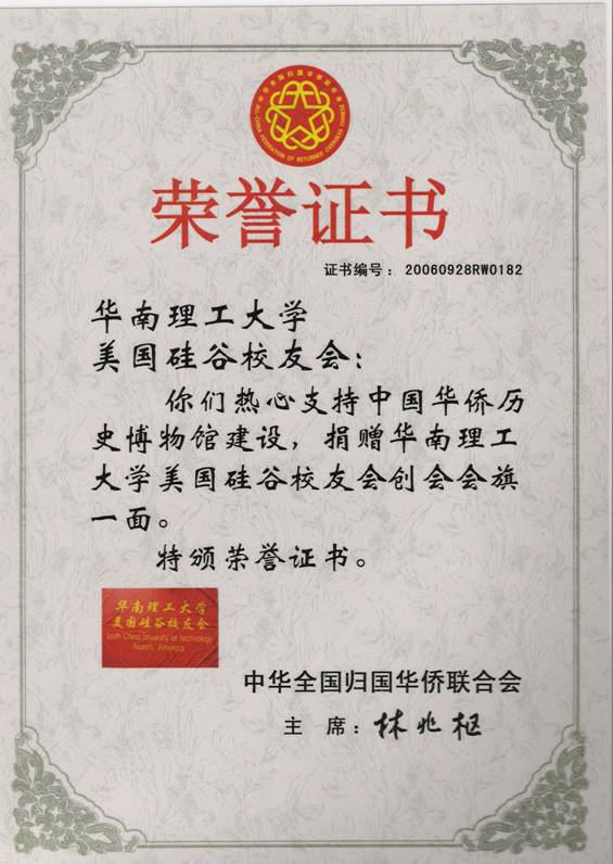 SCUTAA flag? Our previous SCUTAA flag is now an exhibit of Thanks to Mr. Guan and his wife Sihong’s